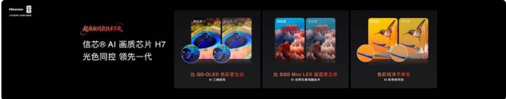 信芯AI画质芯片H7是驾驭RGB-Mini LED技术的超强大脑,作为海信E7S Pro额外搭载的独立高算力画质芯片,与普通电视的基础显示芯片形成代际差距,堪称电视界的“5090级独显”。信芯H7以108bits超高控色精度实现像素级光色同控,可独立指挥红、绿、蓝三路光源的亮度与色彩调节,而传统单色背光技术仅能实现简单的亮暗控制。依托信芯H7的AI防串色科技与AI自然光晕消除算法,芯片可毫秒级侦测画面色彩边界,智能抑制色光干扰,让光晕消融至人眼不易感知的程度,实现“以色制光”的极致效果。同时,信芯H7搭载的AI超清晰解构Pro技术,可将2K、1080P信号逐帧重构为接近4K的超高清画质,AI人眼景深追焦技术还能智能识别画面主体,强化细节、柔化背景,让观影沉浸感大幅提升。
