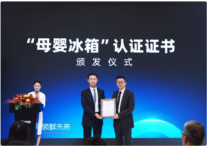 在本次发布会中,我们共同见证了中国家用电器研究院副院长曲宗峰向奥马冰箱颁发由中家院认证中心授予的“母婴家电认证“。此项认证标志着奥马母婴冰箱在质量、安全、储鲜性能等方面均达到业内严苛标准,产品品质与智能创新均走在行业前沿,是真正贴合母婴家庭核心需求的优质产品。