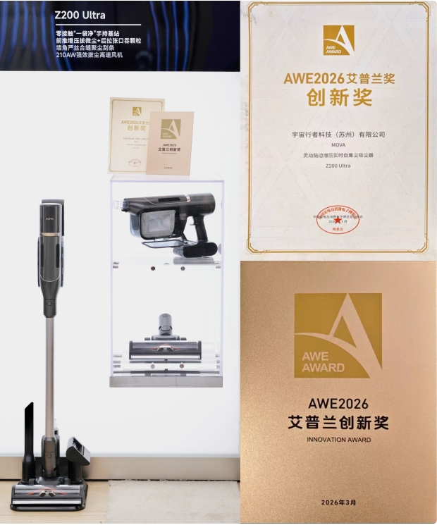 自品牌创立以来,MOVA始终以“技术创新解决清洁痛点”为核心,聚焦家庭清洁的真实场景,持续投入研发并打造原创技术体系。此次斩获艾普兰奖,是MOVA吸尘器在清洁电器领域的重要里程碑,更是对其坚持技术创新的最好回馈。