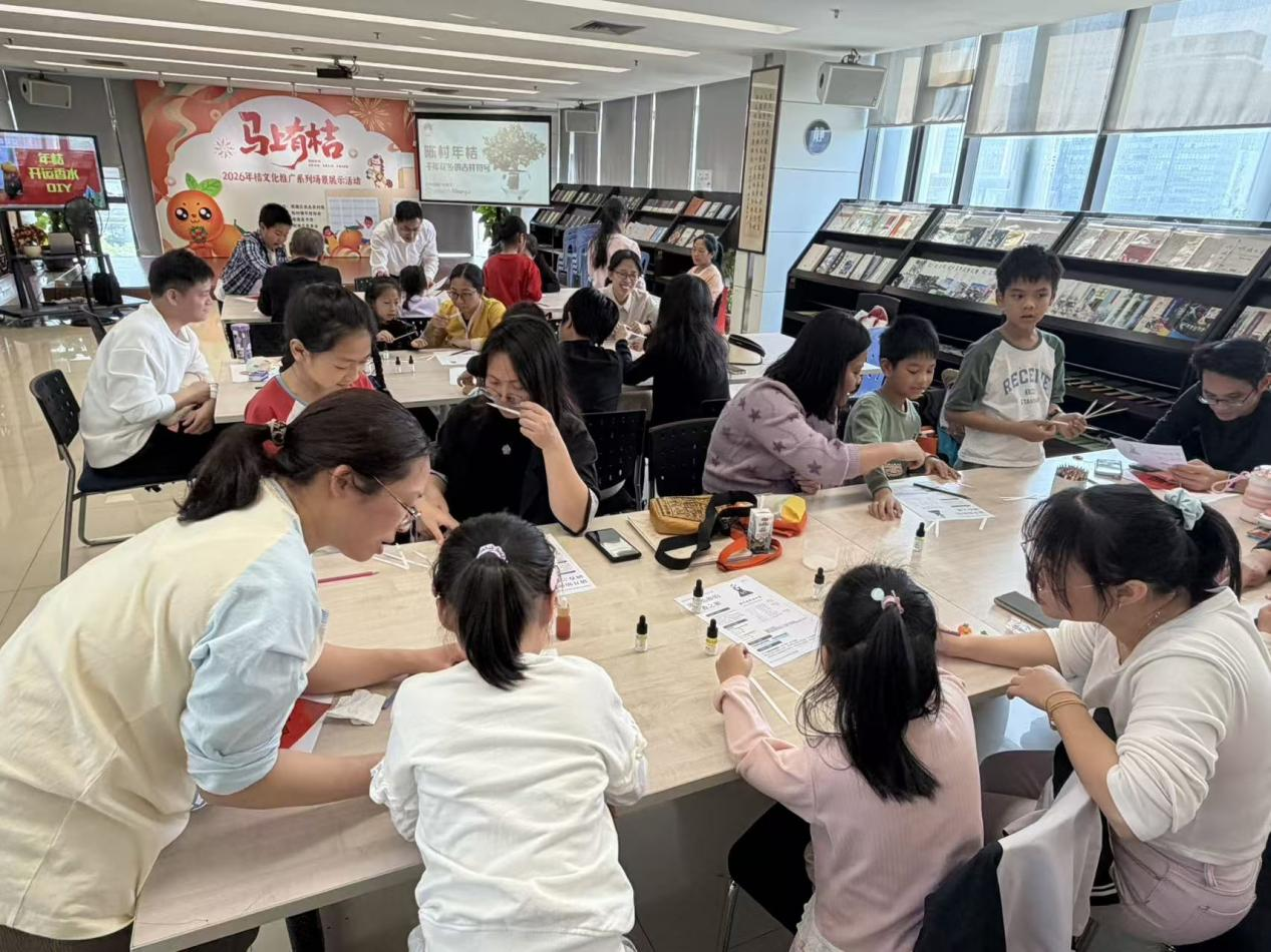此次活动以手工体验为纽带,让亲子家庭在感受 DIY 乐趣的同时,将年桔文化的美好寓意深入人心。作为顺德图书馆助力乡村振兴的重要举措,活动现场特别设置了种植类主题图书展览,涵盖纸质图书与线上数字资源,让读者在参与体验的过程中激发阅读兴趣,让岭南传统文化在书香浸润中焕发新的活力。