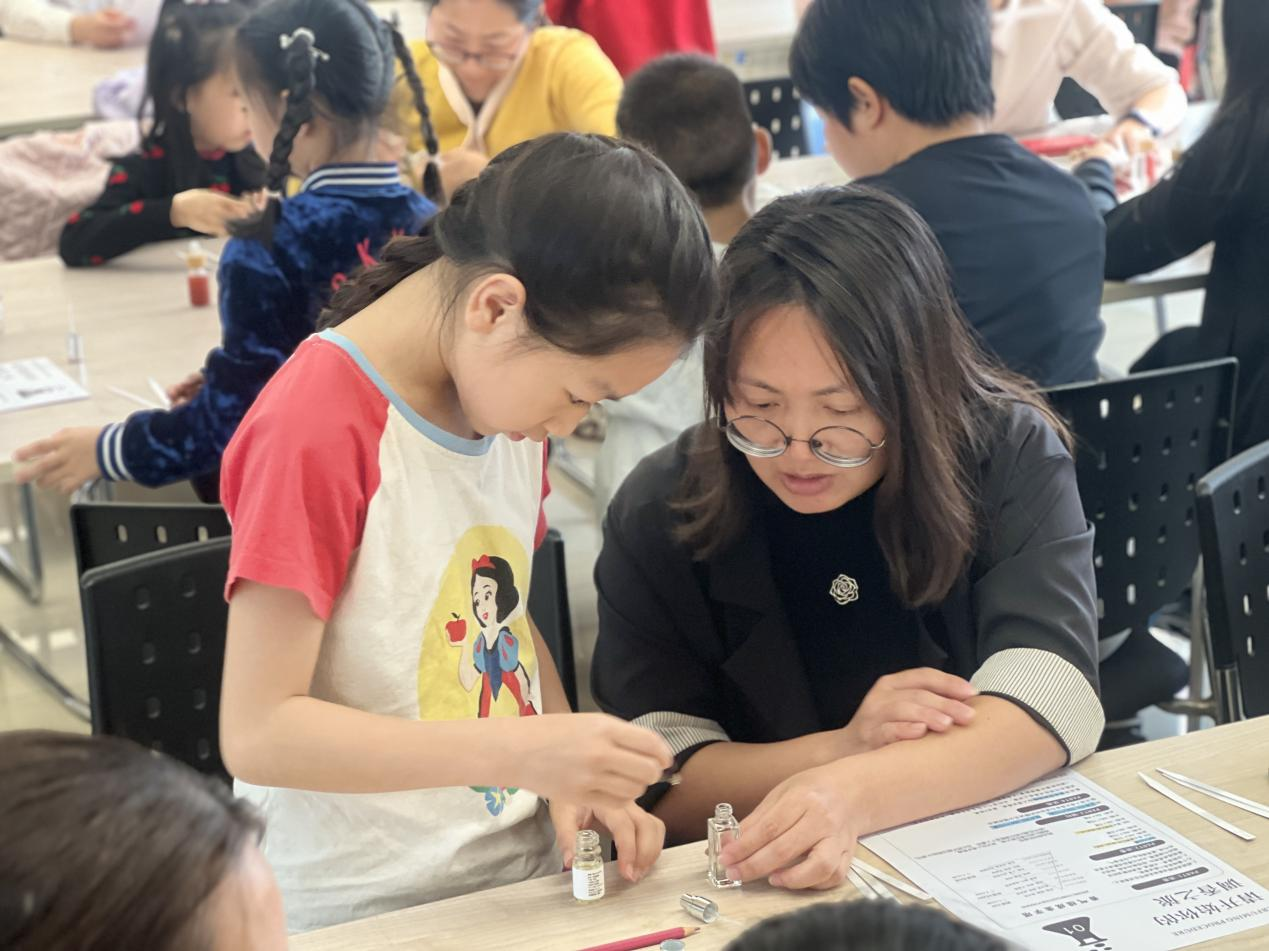 随后开展的“年桔开运香水”制作课堂,吸引了近 30 组亲子家庭踊跃参与。专业调香师现场支招,从挑选年桔精油、搭配基底液,到按比例混合、调试香气,再到封瓶祈福,每一步都细致指导。亲子搭档默契配合,指尖调配的不仅是专属香氛,更是团圆相守的幸福、马年顺遂的期许。最后配上祈福封瓶仪式,孩子们举着亲手制作的香水欢呼雀跃,空气中满是桔香与欢笑。