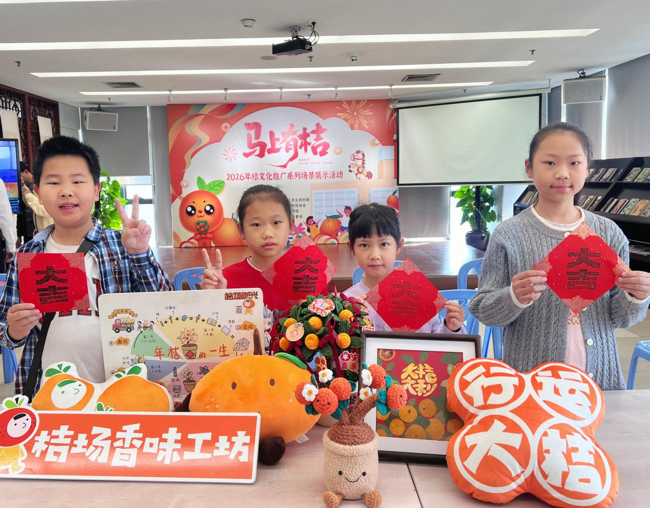 3月14日上午,春和景明,书香萦绕的顺德图书馆内添了一抹清甜桔香,“马上有桔”年桔文化系列场景展示活动正式启幕,首场“年桔开运香水”亲子工坊同步暖心开展。