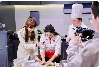 直播后半程,自由式滑雪世界冠军、长虹·美菱热雪体验官贾丽亚惊喜现身,与主播、达人一同品鉴非遗茶点,从冠军视角分享对智能生活和健康饮水的理解。她表示:“美菱新鲜厨房让我感受到科技带来的‘自由’——高效、精准、安心,让我有更多时间去享受生活的美好。”
