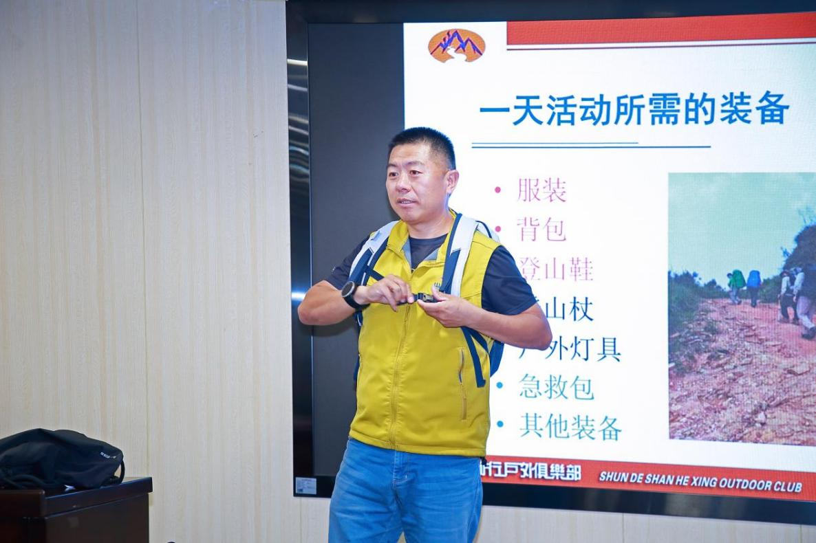 课堂上,讲师们结合自身丰富的户外经验,围绕四大核心板块展开指导。首先,讲师从装备选择和徒步规划两方面,指导家长和孩子 做好出发前的充分准备。装备方面重点介绍了专业的、舒适轻便的鞋服、背包及应急物品的选择;规划则针对孩子体能特点,强调合理分段与能量储备,确保行程安全稳妥。
