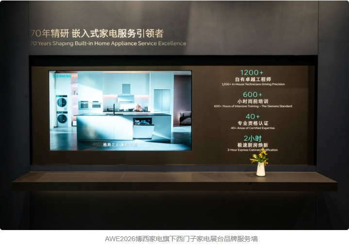这正是博西家电三十余年来始终在回应的问题。作为植根中国三十余年的全球家电领导者,博西家电深知,消费者的幸福感不仅来自产品本身的卓越品质,更来自从选购到使用、从安装到维护的每一个细节是否被温柔以待。在刚刚落幕的AWE 2026中国家电及消费电子博览会上,博西家电不仅展示了旗下博世家电与西门子家电的智能化创新成果,更首次在展台设立品牌服务墙,将其深耕嵌入式家电领域数十年的服务体系,从幕后带到台前,向行业与消费者集中呈现其“全价值链服务”的完整图景。
