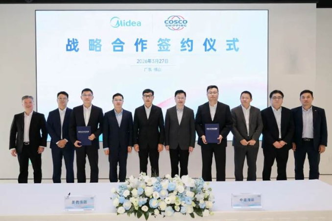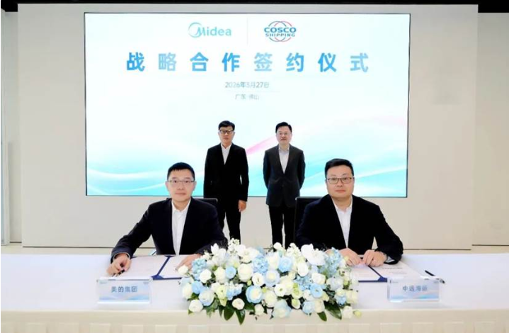 2026年3月27日上午,美的集团与中远海运集团在佛山顺德美的08空间举行战略合作协议续签仪式,中远海运集团副总经理、党组成员张峰与美的集团副总裁兼智能家居事业群总裁赵磊代表双方签署合作协议,中远海运集团董事长兼党组书记万敏、运营管理本部总经理陈帅,美的集团董事长兼总裁方洪波、执行总裁王建国等核心管理层出席签约仪式。