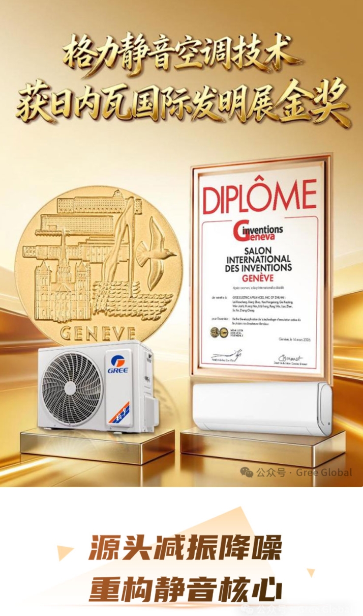 作为全球历史最久、影响力最大的发明展之一,日内瓦国际发明展的奖项是对创新成果的国际权威认可。此次格力摘得金奖,不仅是空调技术创新的又一里程碑,更是中国家电行业在静音节能领域的技术突破获得了全球专业层面的高度肯定。至此,格力电器已获得日内瓦发明展金奖17项。