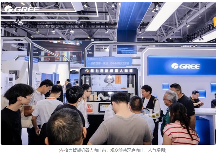 机器人应用方面,格力展示了机器人配合GA-MV856高速高精加工中心实现自动化上下料,探索未来工厂人机协作的可能性。同时,一台双臂咖啡机器人也成为展位的“流量担当”,它可全自动制作多种咖啡饮品,支持扫码支付与语音互动,展现了格力技术在工业之外、新零售场景中的延展能力,也为展位带来了可观的互动热度。