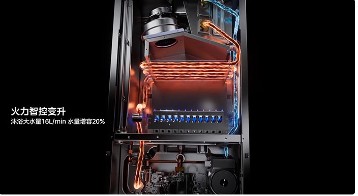 其次,很多壁挂炉的问题不是没有热水,而是在关键场景下不够用。无论是浴缸放水、厨房和卫浴同时用水,还是双卫连续洗澡,尊享Ⅱ都试图用24kW做到16L/min大水量,并通过火力智控变升技术实现20%的水量提升,去覆盖更复杂的家庭用水场景。