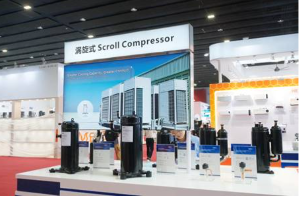 除家用空调外,美芝现场还展示了应用于T3工况(适用于最高环境温度52°C的热带气候)的家用及商用领域的转子式压缩机、涡旋式压缩机等产品。如针对中东等高温干燥地区的严苛运行环境,美芝针对性推出中东分体空调涡旋压缩机。在高温环境下,该压缩机制冷能力显著优于常规活塞机型,能效比高出6%~8%,保障用户在酷热季节的拥有舒适体验。