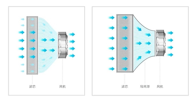 但装填量并非唯一变量。气流若只集中冲击滤芯中心,中心区域会提前饱和穿透,而边缘部分的容量未被充分利用。这一情况下长久使用,宣传页上的 CADR 数字已不再成立。