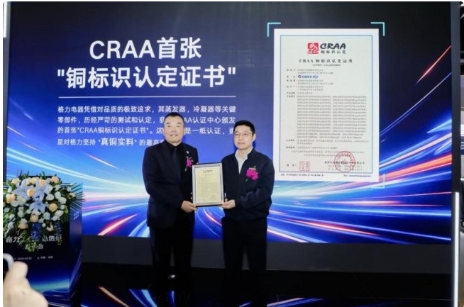 格力拿下的全国首张“CRAA铜标识认证证书”,意味着它是行业内第一个通过最严格实物检测、被官方盖章确认“真铜实料”的品牌。