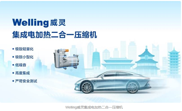 对此,威灵汽车部件历时近3年研发、推出了新能源汽车热管理领域具有革命性意义的“二合一”产品:威灵集成电加热二合一压缩机。该产品不仅具备为电池升温、为车内空调加热以及制冷等全部功能,同时在加热性能效率、产品体积、重量表现上都得到显著提升,同时省去一套高压供电和低压通信线路,系统更加集成化。
