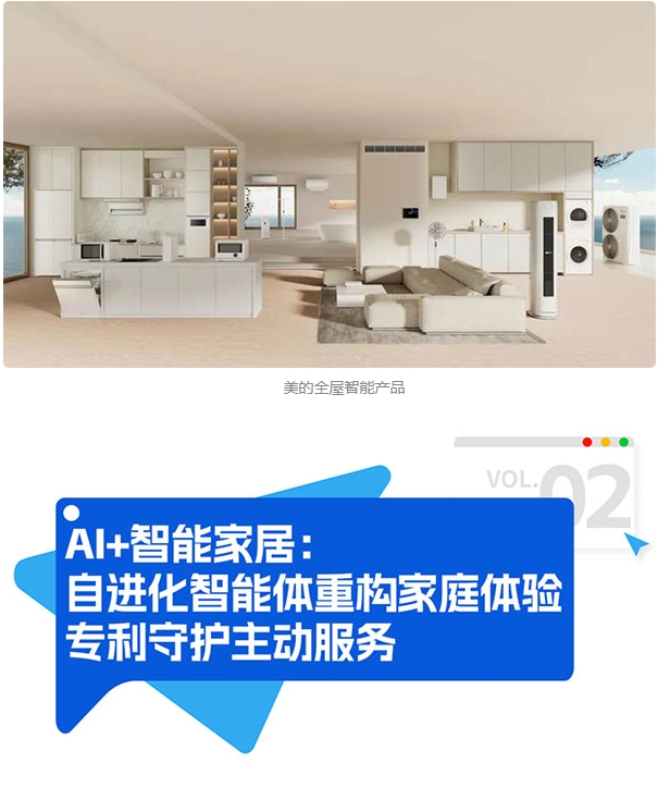 在智能家居赛道,美的以MevoX家居垂类大模型为核心,打造行业首个落地的自进化AI家居智能体,实现“感知-学习-决策-执行”完整闭环,推动家电从被动控制向主动服务、机器人化升级,相关技术形成高密度专利布局。