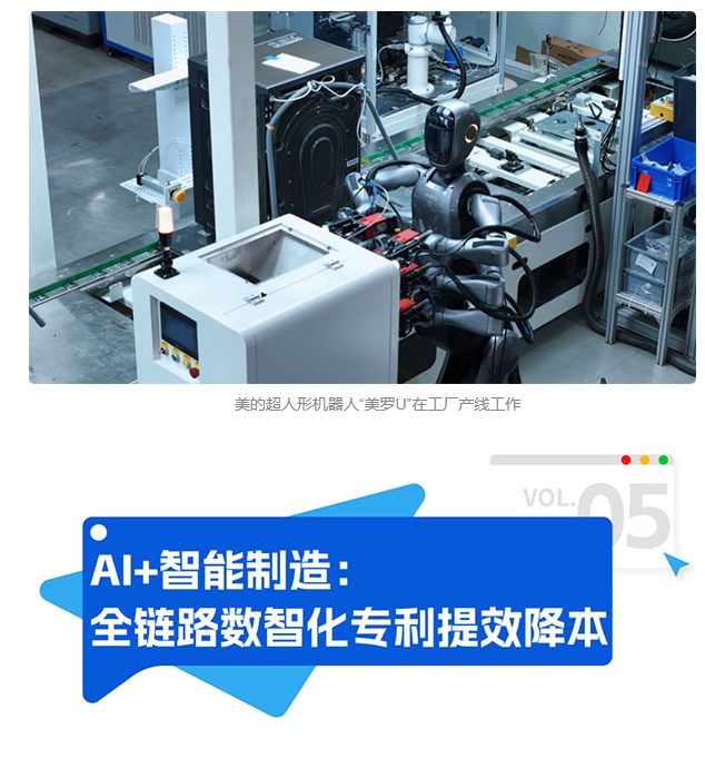 从家庭大脑到工厂大脑,从智能家居到工业与人形机器人,从智慧楼宇到产业赋能,美的以AI为核心引擎,以知识产权为创新底座,将每一项技术突破转化为专利成果,将每一项专利沉淀为产品竞争力。