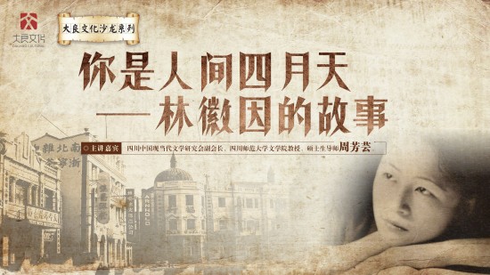 由大良街道宣传文体办公室主办,大良街道文化中心承办的大良文化沙龙之“你是人间四月天——林徽因的故事”讲座,将于2017 年2 月25 日(星期六)晚上8 点在梁銶琚图书馆一楼报告厅举行。讲座特邀四川中国现当代文学研究会副会长、四川师范大学文学院教授、硕士生导师周芳芸教授做客,与市民一同去寻踪关于林徽因的故事和那个年代的爱情。