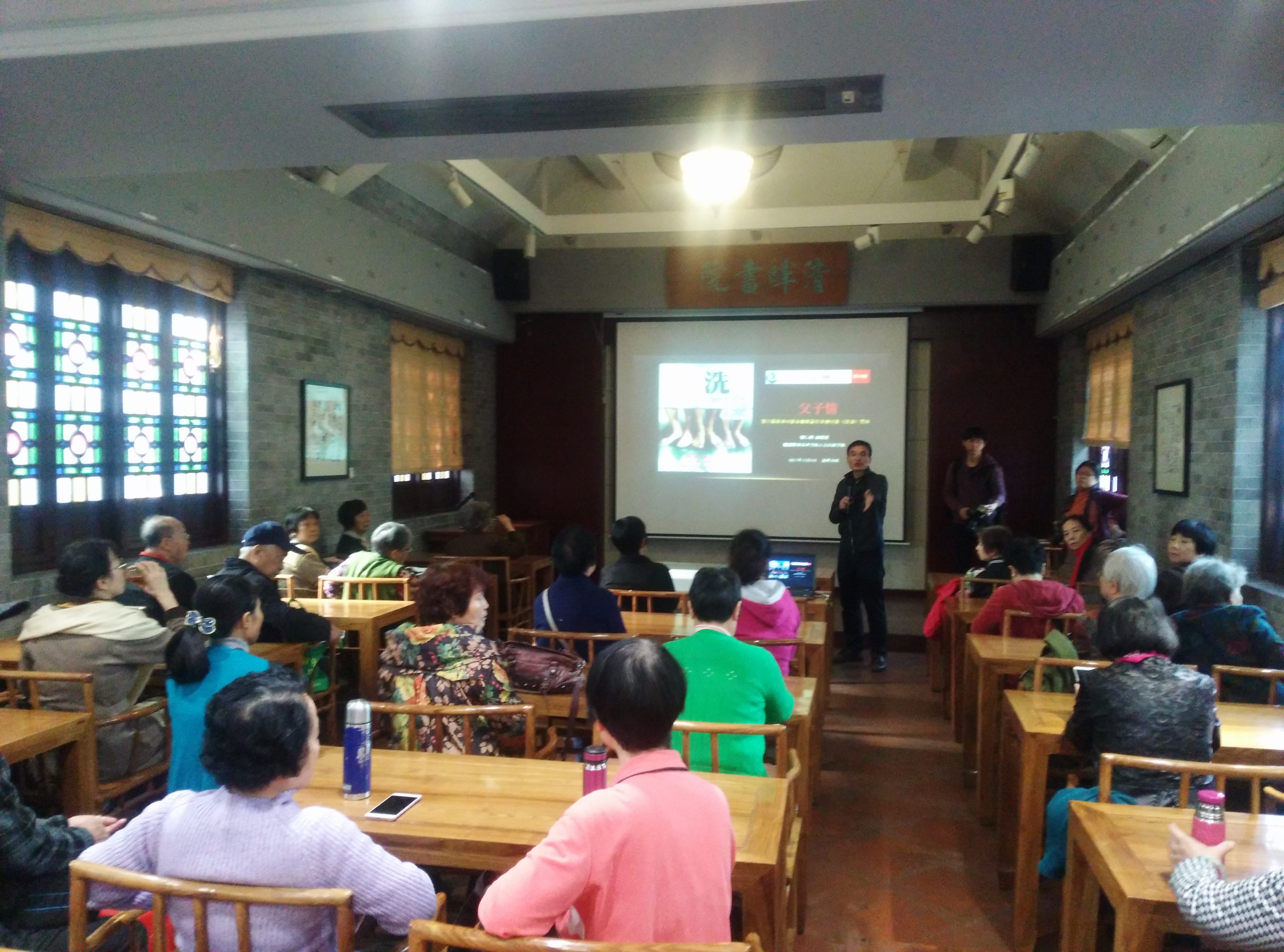 活动得到老干部们的热情支持,现场座无虚席。顺德职业技术学院社会工作专业黎仁刚副教授对第21届香港电影金像奖最佳亚洲电影《洗澡》进行了深入的讲解。《洗澡》围绕老刘一家两代人对澡堂子和洗澡的态度,反映了新旧思想、新旧文化的冲突与融合,整部作品弥漫着一种浓浓的怀旧情绪。它告诉我们,人必须会死亡,陈旧的社会设施也将会灭亡。在这不可阻挡的新陈代谢潮流中,人的情感世界里总会保留下一些生活中微不足道、在人的感情中却是至关重要的东西。黎教授精彩的解读,获得老干部们热烈的掌声。