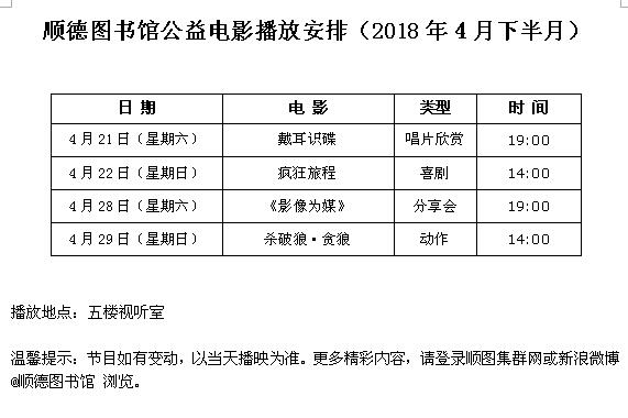 顺德图书馆每周音乐会排期(2018年4月下半月)