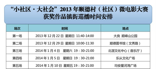 主题:“小社区•大社会”2013年顺德村(社区)微电影比赛获奖作品镇街巡播