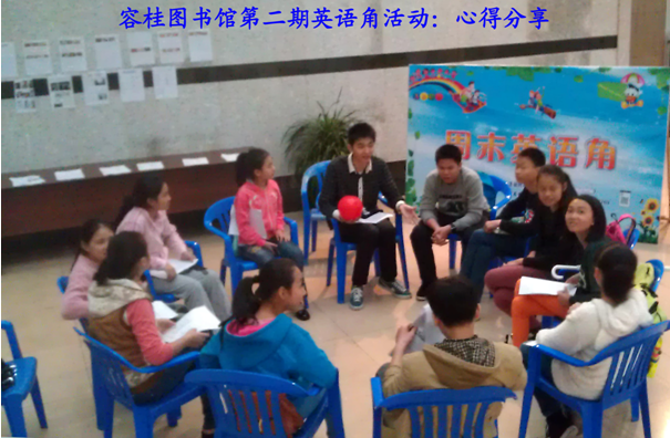欢迎加入容桂图书馆英语角的微信群(625307750)或关注微博(RGLIB容桂图书馆、容桂宣传文体)有关活动动态,或致电28896765、28896766进行咨询。希望大家为该活动每周的主题和内容出谋献策,使我们的活动越办越好。