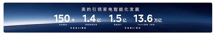 一个更全面的智能家电网络。 目前,美的全品类5亿台家电具备联网能力,全球范围内已实现超过1.4亿智能家电联网,超过1.5亿智能用户接入,完成超过150个品类的家电产品AI化布局。这些智能家电与美居App、智慧中控屏等共同构成全空间交互入口,成为家庭的感知、连接与交互中心。