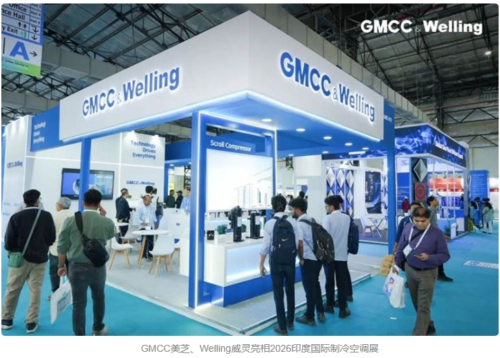 近日,全球领先的暖通家电核心部件供应商GMCC美芝、Welling威灵亮相2026印度国际制冷空调展(ACREX INDIA)(2号馆A12展位),展示了包括适用于家用及商用空调,家用冰箱、轻商制冷领域的转子式压缩机、涡旋式压缩机、往复式压缩机、空调电机、阀等产品,以高效节能、稳定可靠、绿色环保的核心部件产品为全球及印度消费者的舒适生活助力。